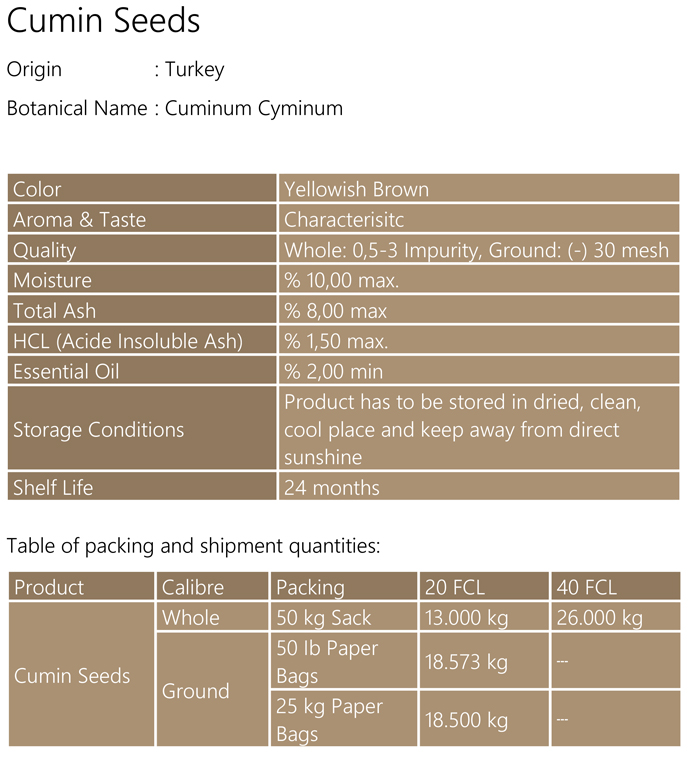 Cumin (Cuminum cyminum) is a 40–60 cm tall, one-year-old herbaceous plant species that blooms from May to June in the family of Apiaceae. Its origin is the Eastern Mediterranean and the Middle East.